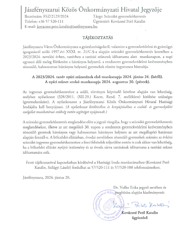 A Helyi Választási Bizottság Győriné dr. Czeglédi Márta polgármester lemondása miatt 2025. 07. 24-én megüresedett polgármesteri mandátum betöltése érdekében a választási eljárásról szóló törvényben foglalt hatáskörében eljárva a mai napon…